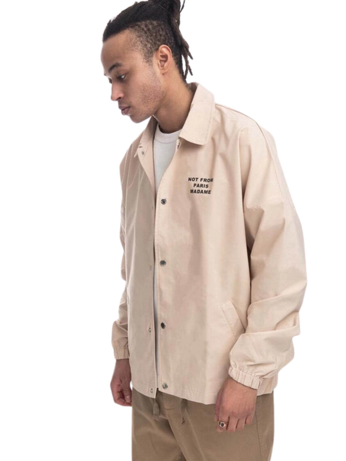 Expertly crafted from high quality materials, the Drole De Monsieur Jacket features a sleek logo design on a cream background. The perfect blend of style and comfort, this jacket is a must-have for any fashion-forward individual. Made with precision and expertise, this jacket is sure to elevate any outfit.