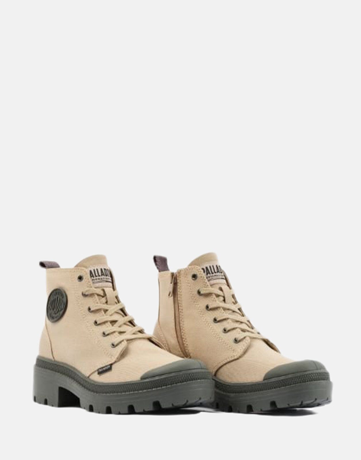 The Pallabase Hi boot brings our iconic Pampa to a higher level. A feminine boot with a higher heel and Palladium DNA, including the iconic rubber toecap. A military look with a soft twill canvas upper makes this boot a great addition to your urban lifestyle outfit.